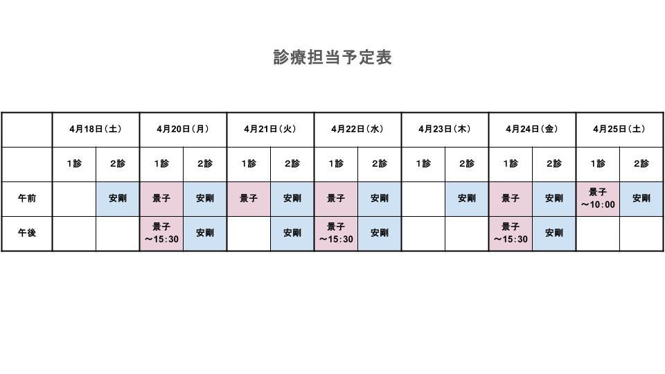 ◆ 火曜午前は 1診察室 景子医師 2診察室 院長(安剛医師)